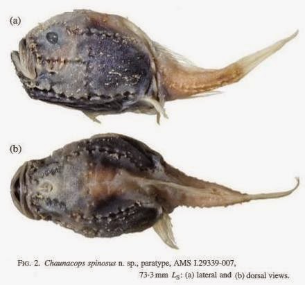 H.-C. Ho and M. McGrouther. 2015. A New Anglerfish from eastern Australia and New Caledonia (Lophiiformes: Chaunacidae: Chaunacops), with New Data and Submersible Observation of Chaunacops melanostomus.