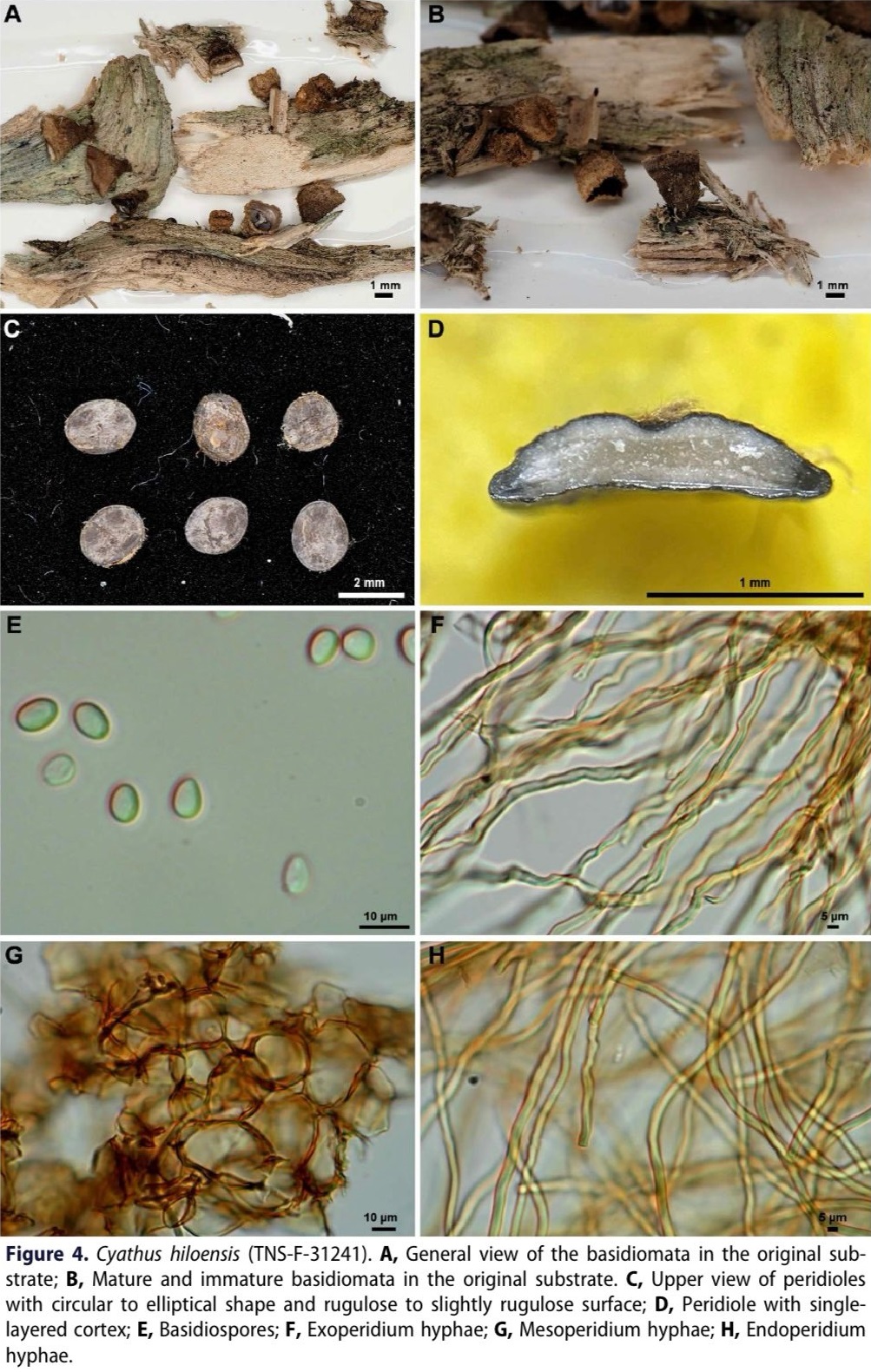 Jefferson dos S. Góis, Rhudson H.S.F. da Cruz, Iuri G. Baseia and Kentaro Hosaka. 2025. A new species Cyathus hiloensis (Nidulariaceae, Basidiomycota) in the Hawaiian Archipelago. New Zealand Journal of Botany. DOI: doi.org/10.1080/0028825X.2025.2454602