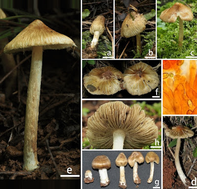 | Basidiomata of Pseudosperma citrinostipes. a-b. FCAS3504. c., e. and h. FHMU3150 (holotype). d., f. and g. FCAS3503. bars = 10 mm. photos by Y.G. Fan. |