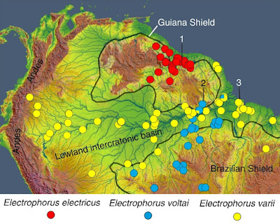 Is there only one electric eel species? For two and a half centuries since its description by Linnaeus, Electrophorus electricus has captivated humankind by its capacity to generate strong electric discharges. Despite the importance of Electrophorus in multiple fields of science, the possibility of additional species-level diversity in the genus, which could also reveal a hidden variety of substances and bioelectrogenic functions, has hitherto not been explored. Here, based on overwhelming patterns of genetic, morphological, and ecological data, we reject the hypothesis of a single species broadly distributed throughout Greater Amazonia. Our analyses readily identify three major lineages that diverged during the Miocene and Pliocene—two of which warrant recognition as new species. For one of the new species, we recorded a discharge of 860 V, well above 650 V previously cited for Electrophorus, making it the strongest living bioelectricity generator.