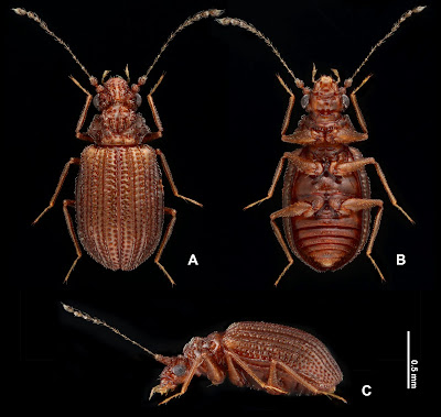| FIGURE 1. Habitus of Dasycerus poseidon Hu & Liang, sp. nov. (A) Dorsal view. (B) Ventral view. (C) Lateral view. |