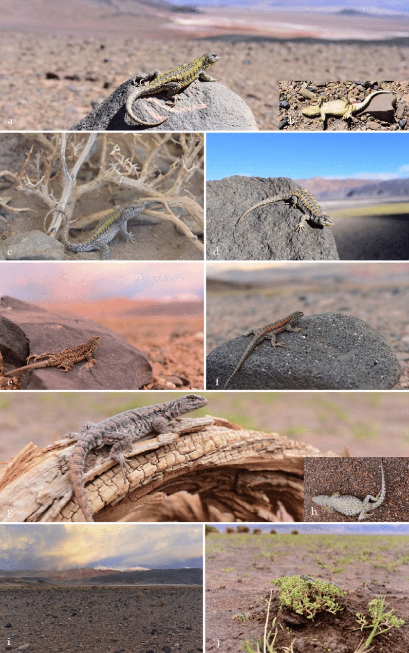 | Liolaemus kunza Abdala, Semhan & Paz sp. nov. & Liolaemus salitrosus Abdala & Paz sp. nov. in Abdala, Paz, Semhan, ... et Langstroth, 2021. Photographs: C.S. Abdala. |